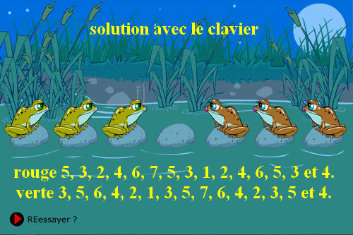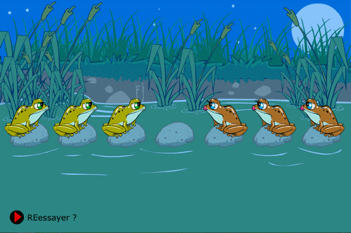 Il y a quelques temps je jouais à ce jeu en flash, qui est un petit casse-tête qui consistait à faire passer les grenouilles vertes à la place des rouges, avec comme règle: